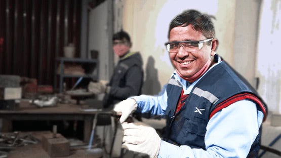 Riyasat Hussein is our precision drilling and metal fitting craftsman - he has been doing this for almost 10 years now, making him an expert. He is proud of his skills and he is also a hard worker supporting his family and has built himself a lovely house.
